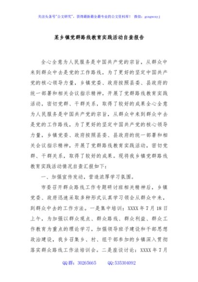 / 某乡镇党群路线教育实践活动自查报告