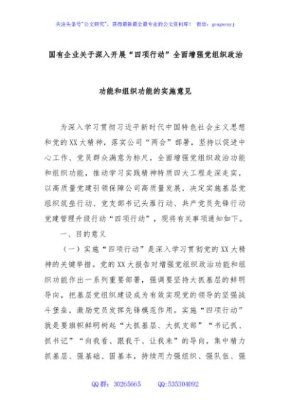 / 国有企业关于深入开展“四项行动”全面增强党组织政治功能和组织功能的实施意见