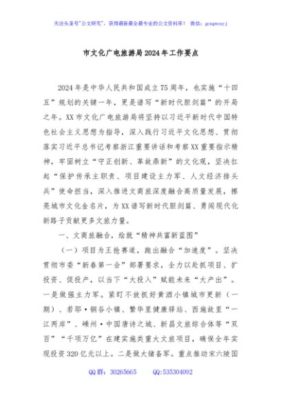 / 市文化广电旅游局2024年工作要点