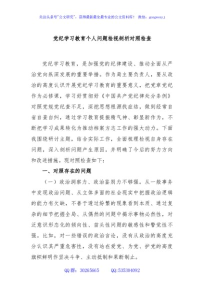 / 党纪学习教育个人问题检视剖析对照检查
