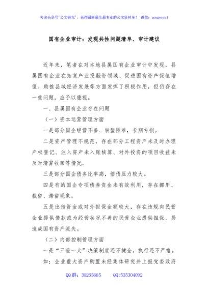 / 国有企业审计:发现共性问题清单、审计建议