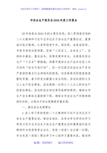 / 市安全生产委员会2024年度工作要点