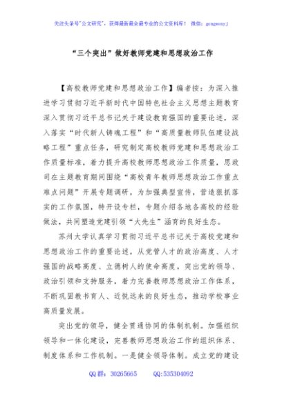 / “三个突出”做好教师党建和思想政治工作