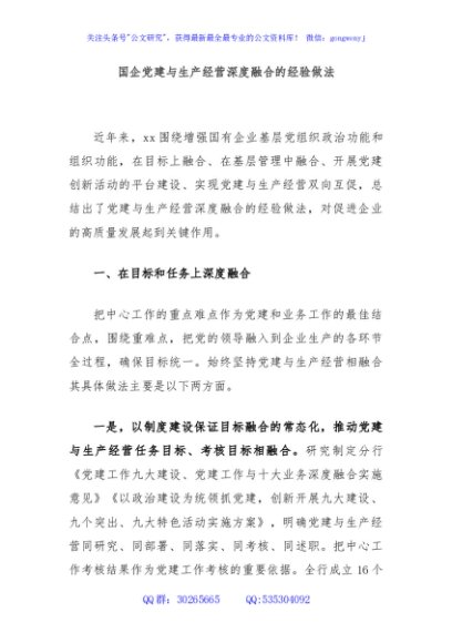/ 国企党建与生产经营深度融合的经验做法