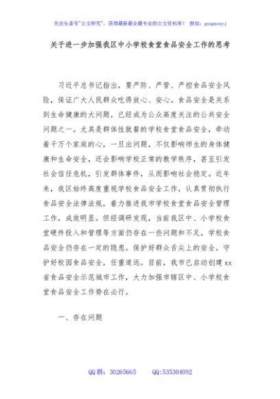 / 关于进一步加强我区中小学校食堂食品安全工作的思考