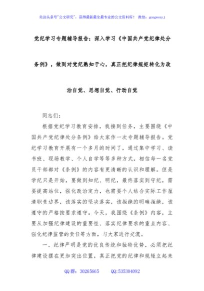 党纪学习专题辅导报告:深入学习《中国共产党纪律处分条例》,做到对党纪熟知于心,真正把纪律规矩转化为政治自觉、思想自觉、行动自觉