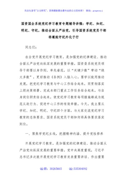 国资国企系统党纪学习教育专题辅导讲稿:学纪、知纪、明纪、守纪,推动全面从严治党,引导国资系统党员干部将遵规守纪外化于行