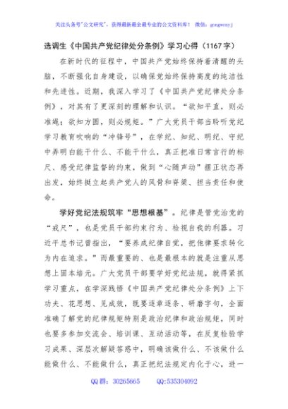 / 选调生《中国共产党纪律处分条例》学习心得(1167字)