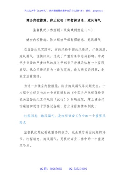 / 健全内控措施,防止纪检干部打探消息、跑风漏气
