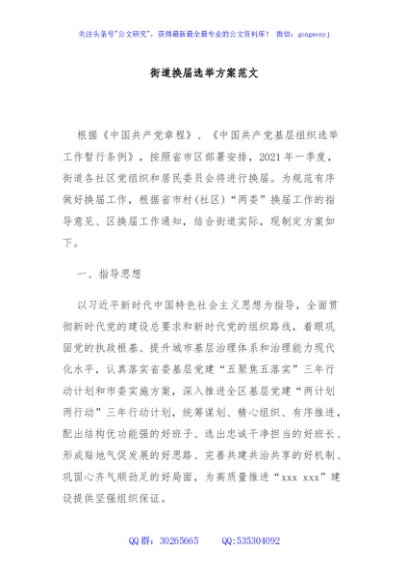 / 街道换届选举方案范文