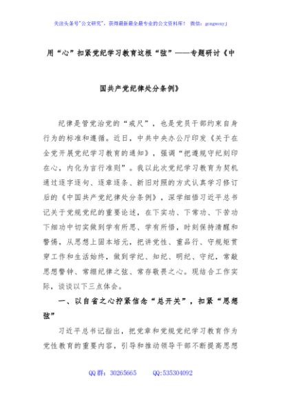/ 用“心”扣紧党纪学习教育这根“弦”——专题研讨《中国共产党纪律处分条例》