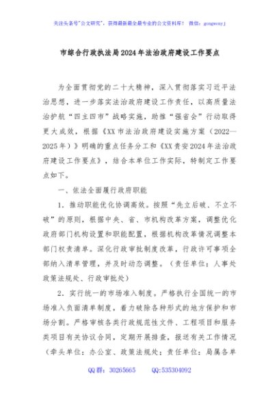 / 市综合行政执法局2024年法治政府建设工作要点
