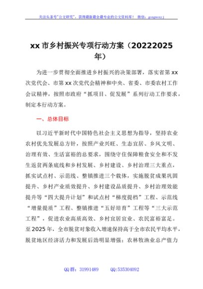 / xx市乡村振兴专项行动方案 (2022—2025年)