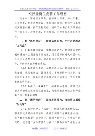 / 银行业岗位竞聘工作设想