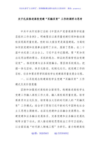 / 关于扎实推进高校党建“双融双育”工作的调研与思考
