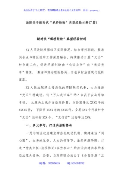 / (7篇)法院关于新时代“枫桥经验”典型经验材料