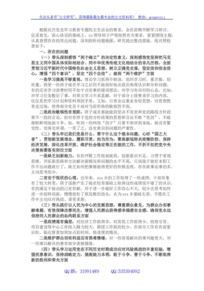 乡镇班子党史学习教育五个带头对照检查材料