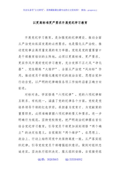/ 以更高标准更严要求开展党纪学习教育