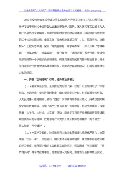 / 市教育系统2022年党建及落实全面从严治党主体责任工作要点
