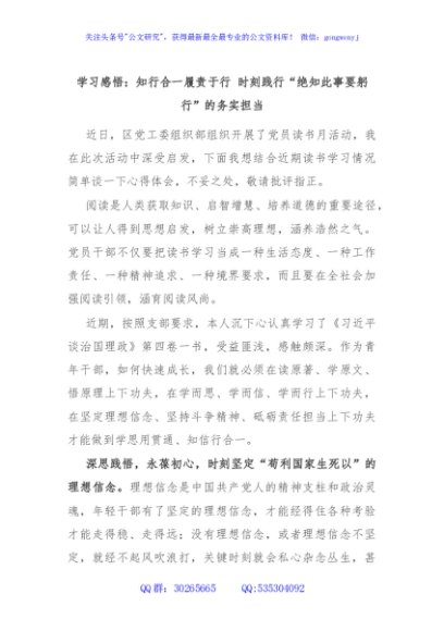 / 学习感悟:知行合一履责于行 时刻践行“绝知此事要躬行”的务实担当