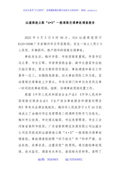 / 0509205 汕湛高速公路“4•5”一般道路交通事故调查报告
