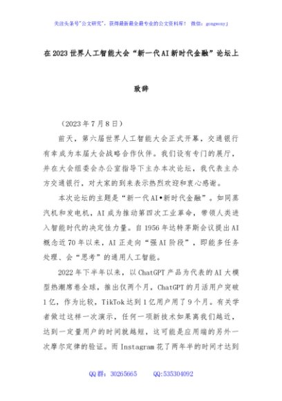 / 在2023世界人工智能大会“新一代AI新时代金融”论坛上致辞