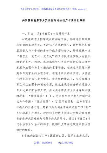 / 共同富裕背景下乡贤治村的内生动力与法治化路径