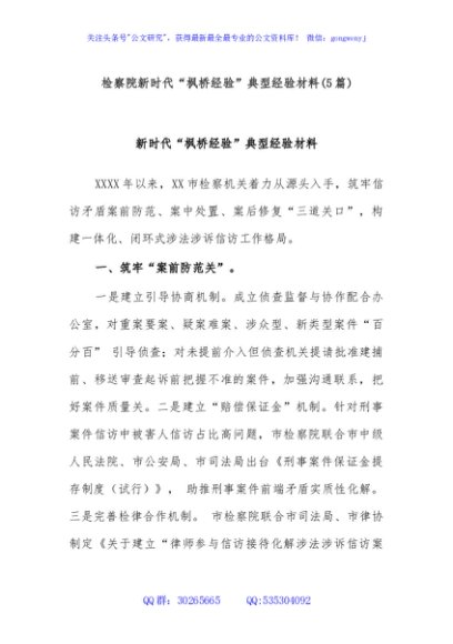 / (5篇)检察院新时代“枫桥经验”典型经验材料