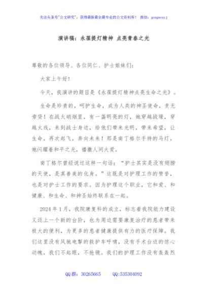 / 演讲稿:永葆提灯精神 点亮青春之光