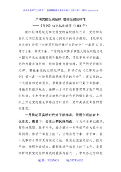 / 严明党的组织纪律 增强组织纪律性 ——《条例》组织纪律解读(1456字)党纪学习教育