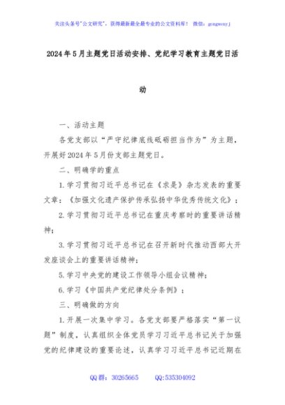 2024年5月主题党日活动安排、党纪学习教育主题党日活动