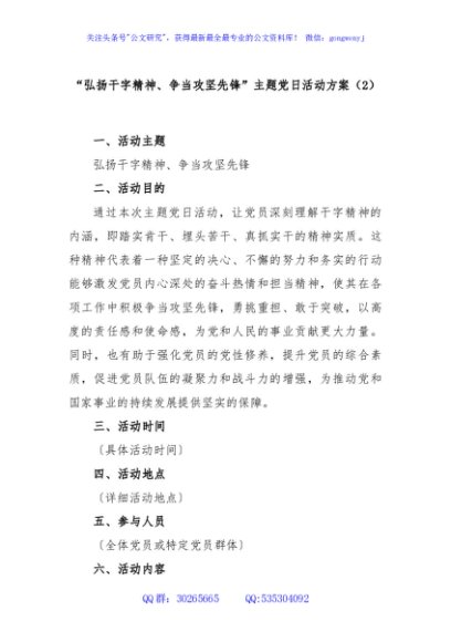 / “弘扬干字精神、争当攻坚先锋”主题党日活动方案(2)