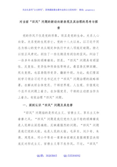 对当前“四风”问题的新动向新表现及其治理的思考与探索