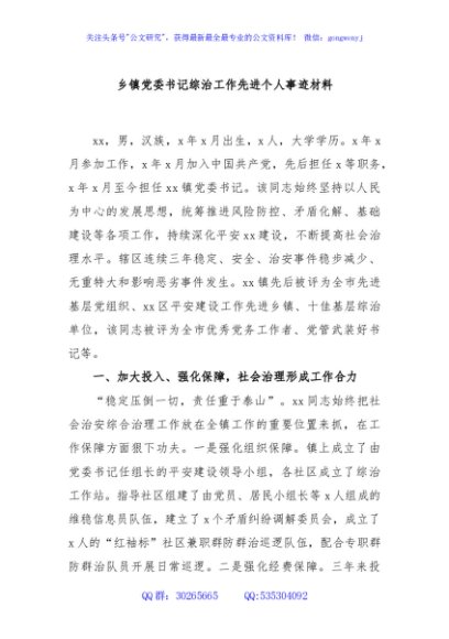 / 乡镇党委书记综治工作先进个人事迹材料