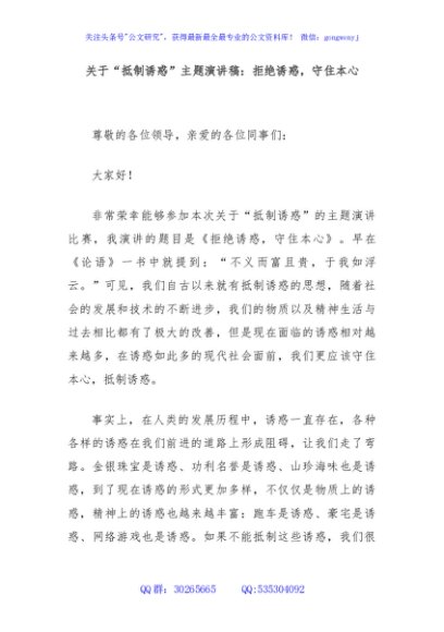 / 关于“抵制诱惑”主题演讲稿:拒绝诱惑,守住本心