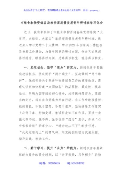 / 市粮食和物资储备局推动高质量发展青年研讨班学习体会
