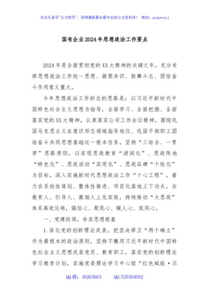 / 国有企业2024年思想政治工作要点