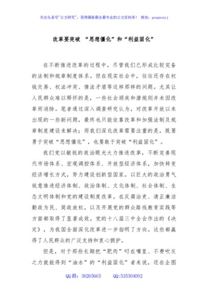 / 改革要突破 “思想僵化”和“利益固化”