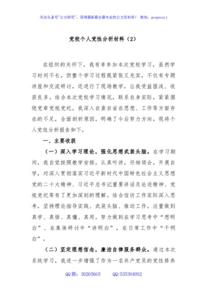 / 党校个人党性分析材料(2)