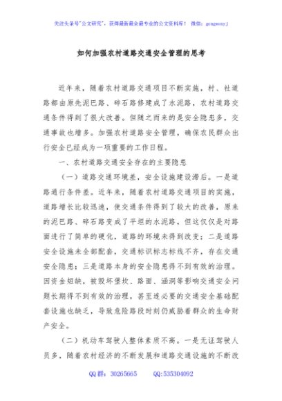 / 如何加强农村道路交通安全管理的思考