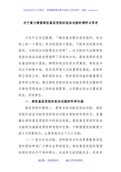 / 关于着力增强高校基层党组织政治功能的调研与思考