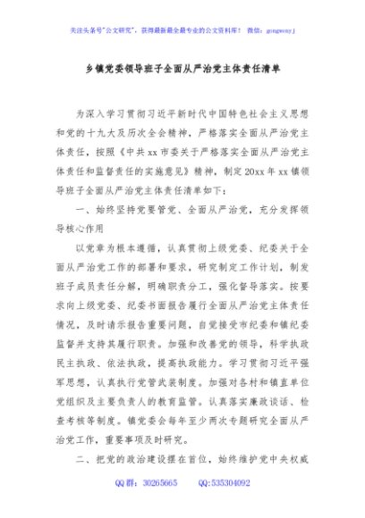 / 乡镇党委领导班子全面从严治党主体责任清单