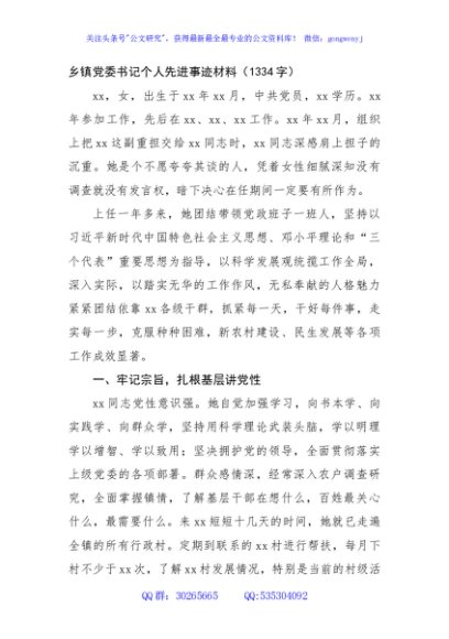 / 乡镇党委书记个人先进事迹材料(1334字)