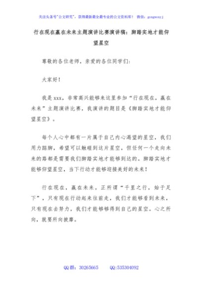 行在现在赢在未来主题演讲比赛演讲稿:脚踏实地才能仰望星空