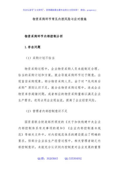 / 物资采购环节常见内控风险与应对措施
