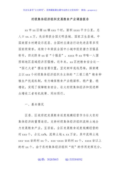 / 村级集体经济组织发展粮食产业调查报告