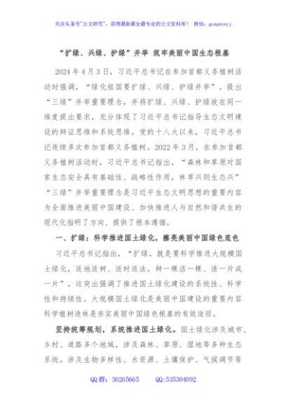 / “扩绿、兴绿、护绿”并举 筑牢美丽中国生态根基