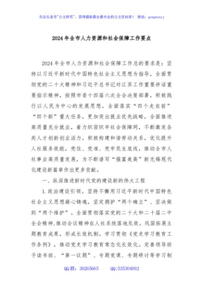 / 2024年全市人力资源和社会保障工作要点