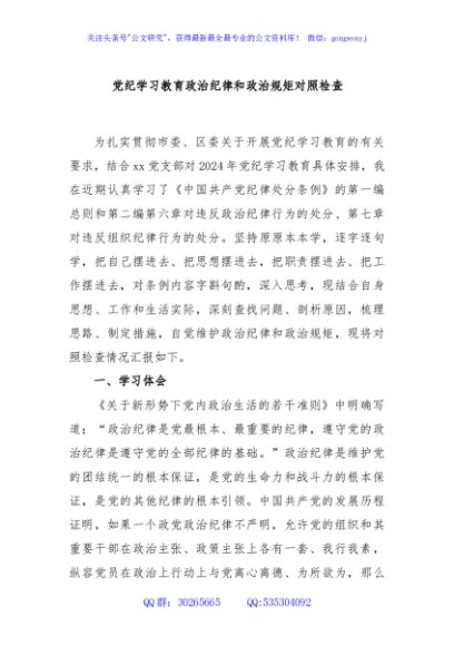 党纪学习教育政治纪律和政治规矩对照检查