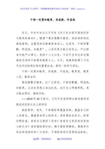 / 干部一定要知敬畏、存戒惧、守底线